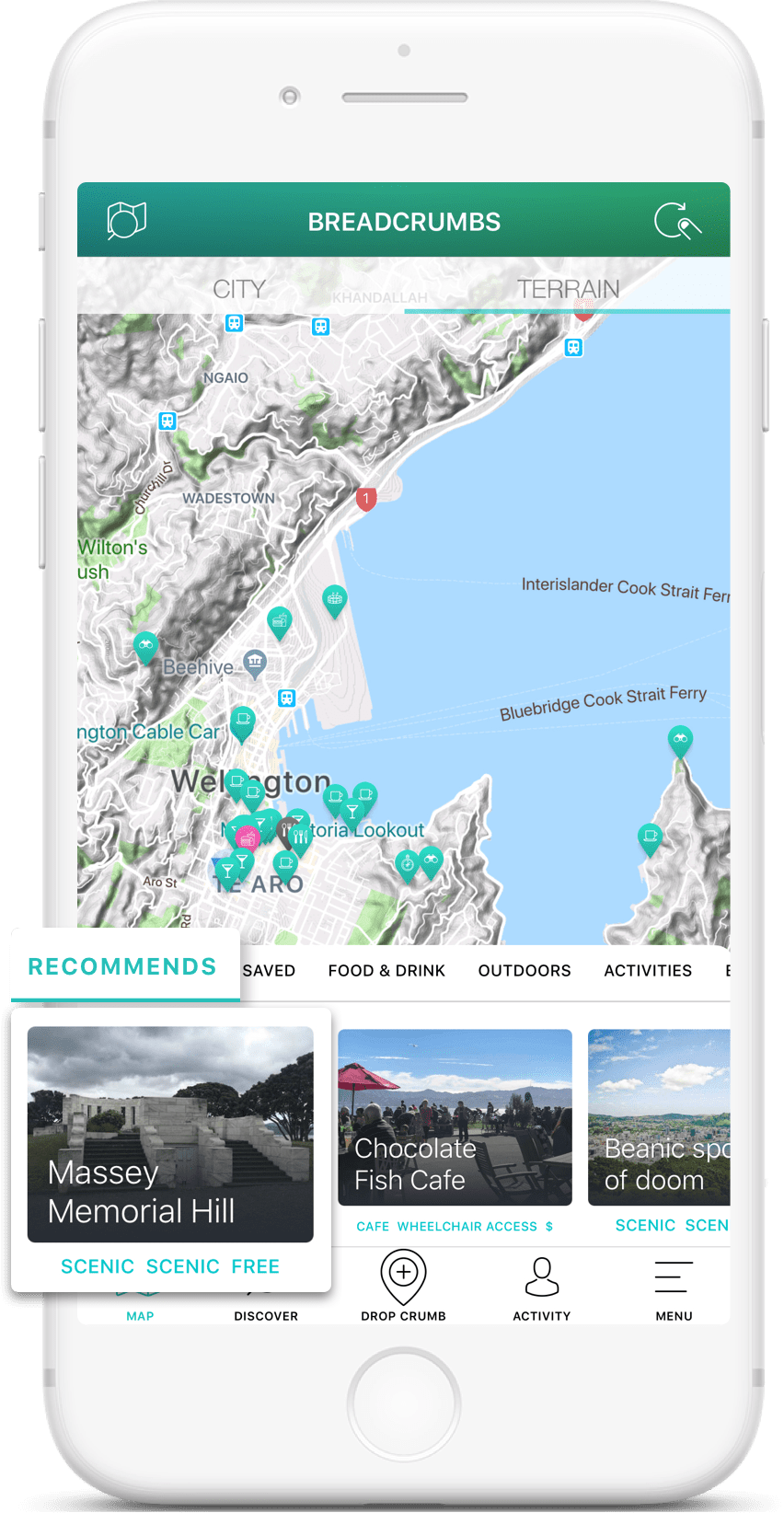 You can search for Crumbs or Users at the top of the Discover Screen. Search for locations, specific Crumbs or usernames - or even handier, by tagged keywords. Try selecting “Tags” and searching a place and a keyword such as “Wellington Coffee” to see all of the cafe’s you can find in Wellington! Searching by tags also allows you to quickly find things that might suit some needs for you such as “Vegan” or “Wheelchair”.